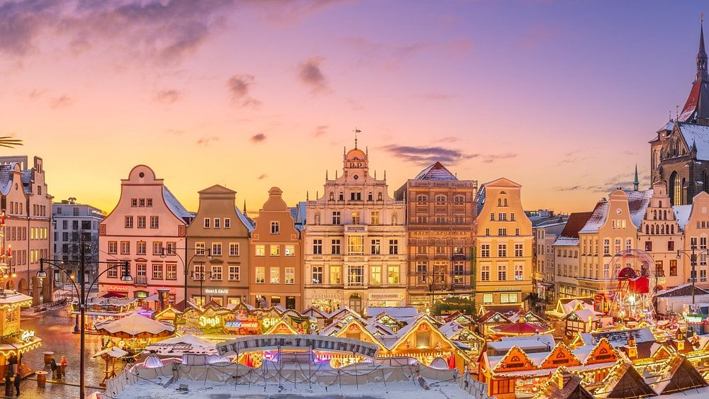 Christmas market on the Neuer Markt square in Rostock, Germany