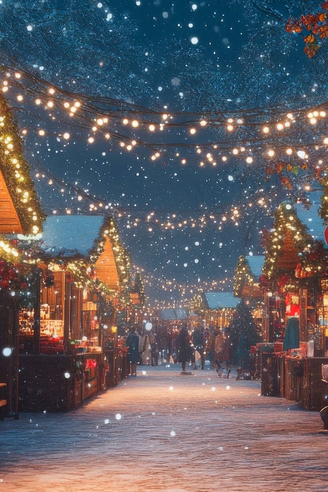 An enchanted Christmas market awakens in magical splendour as gentle snowflakes fall on the festively decorated stalls. Warm light envelops the scenery and spreads an inviting atmosphere. This picture brings a festive atmosphere to any living room and brings back memories of cosy winter evenings. Perfect for a cosy atmosphere!