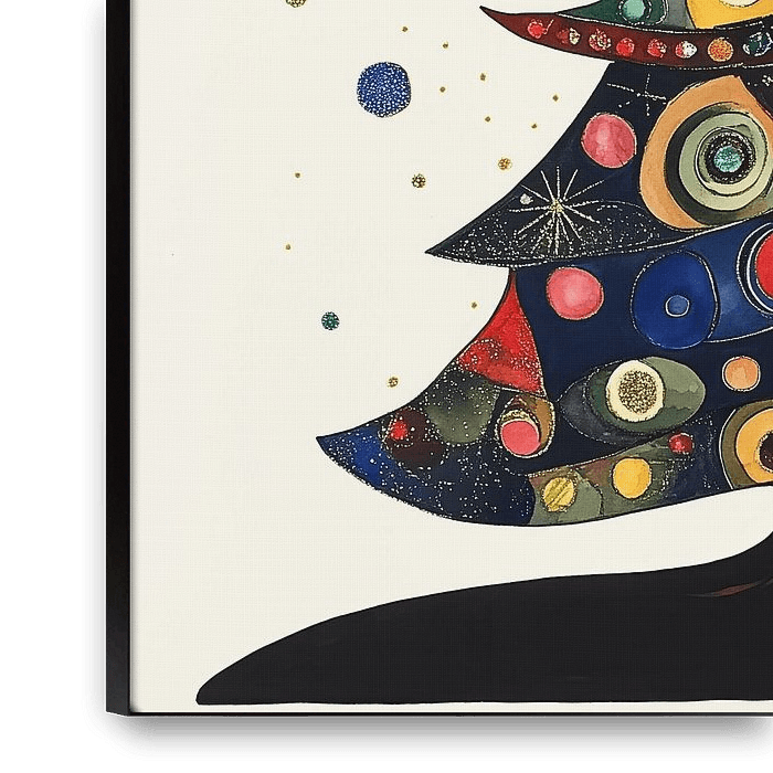 A modern twist on the traditional Christmas tree, this artwork captures the Christmas spirit with a playful, abstract style. The tree is shaped with flowing lines and sparkling baubles, subtly framed by stars. The vibrant colours and free-drawing style bring a contemporary Christmas vibe that is perfect for lovers of contemporary art…