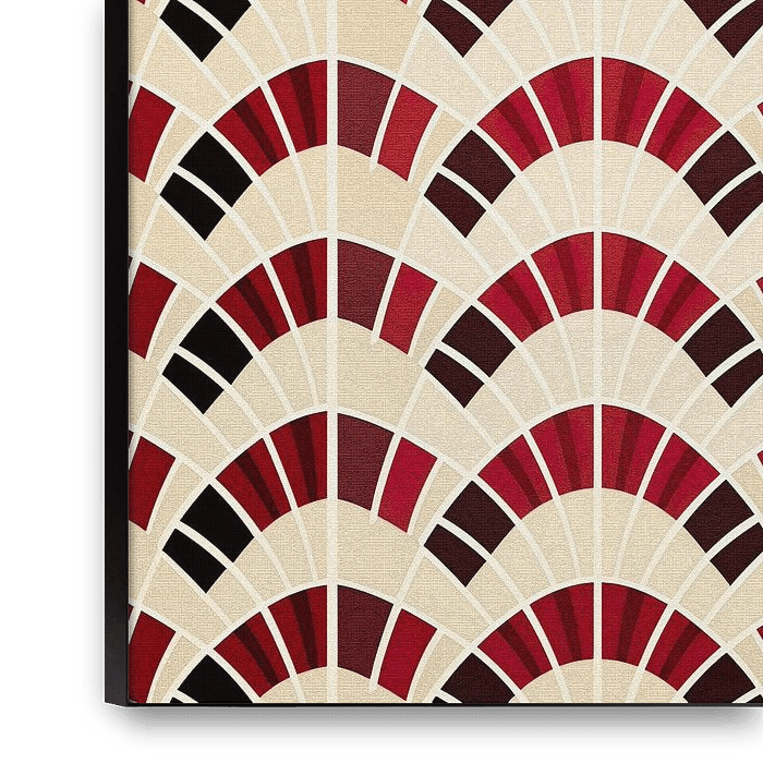 A classic red, cream and beige motif. This piece was inspired by the shapes and the Chrysler Building in New York. The work gives an elegant and classic look to your interior!