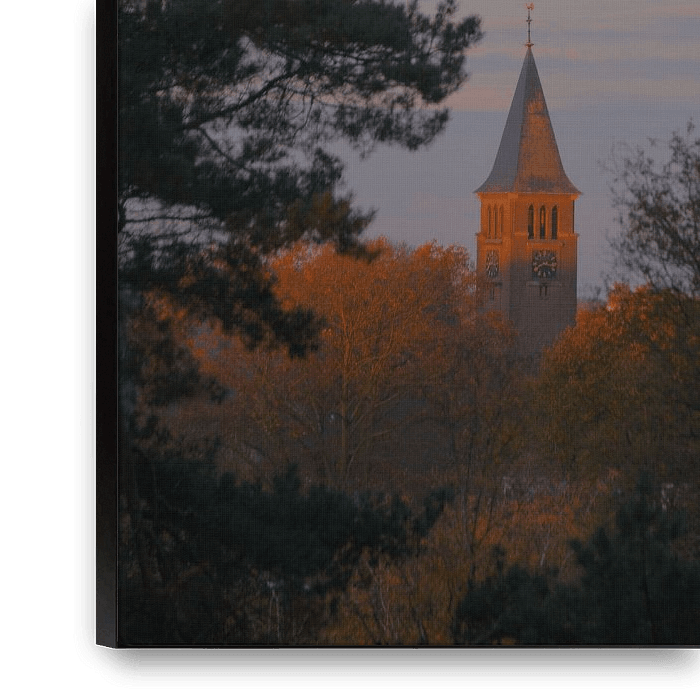 Buy the photo Church tower of Molenhoek at sunrise. by Jurjen Jan Snikkenburg on canvas, ArtFrame, poster and wallpaper, printed on demand in high quality.