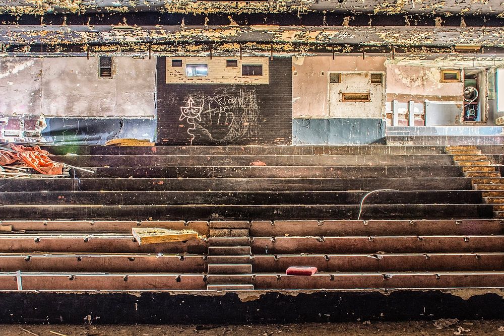 This screening room in an abandoned cinema in Maastricht that closed permanently in 2005 inspired me to take several photos here's. Since that year, the ravages of time have bitten into the decay.