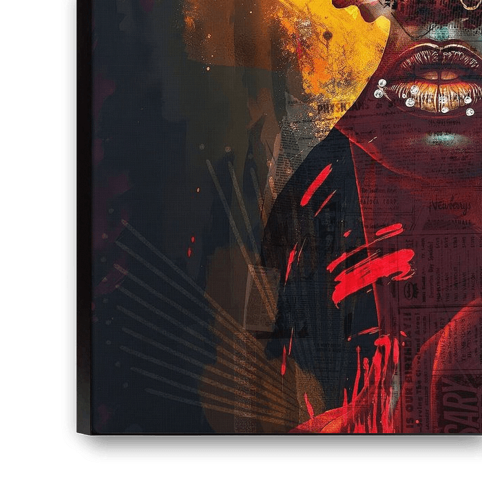 Cinematic Elegance is perfect for lovers of modern art who seek strength and depth in their interiors. This work not only adds colour, but also a sense of connection to a larger world of expression and identity.