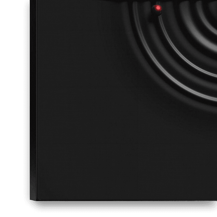 Minimalist image with concentric rings of wave segments and spheres.
