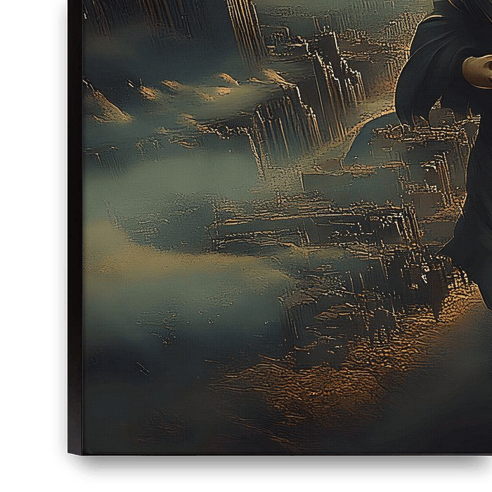 Step into a mythical twilight where megastructures pierce the sky and silence covers forgotten civilisations. In "Cities That Cried Suns", a lonely, unworldly monk floats above a desolate, gold-coloured metropolis. In his hands shines a radiant orb - perhaps the last embers of memory or the spark of an imminent rebirth.