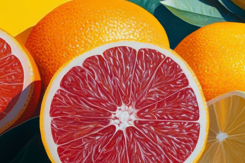 Fancy some sunshine in your interior? This image of half oranges, grapefruits and limes on a bright yellow and pink background is bursting with freshness. The colours are intense and the details painted realistically, making it almost seem like you can smell the fruit. Perfect for kitchens, dining rooms or other spaces where you want to set a positive mood. The combination of citrus fruits with graphic backgrounds makes it modern and stylish. This print is a real eye-catcher and a cheerful addition to your interior. Ideal for lovers of fruity accents and summer energy at home.