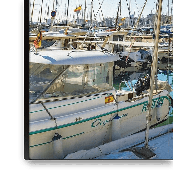 Buy the photo City and boats at marina port at coast of Palma de Majorca, Balearic Islands, Mediterranean Sea by Alex Winter on canvas, ArtFrame, poster and wallpaper, printed on demand in high quality.