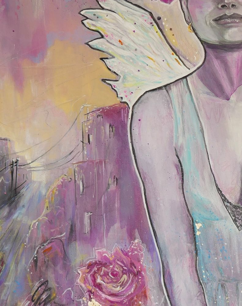 My female angel, with a sly smile, whether she coquettish shivers or soars over the city and its commotion.