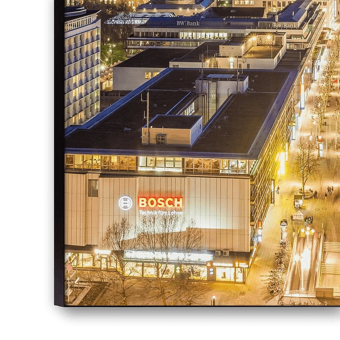 Buy this landscape artwork City center with the Königstraße in Stuttgart by Werner Dieterich on canvas, ArtFrame, poster and wallpaper, printed on demand in high quality.
