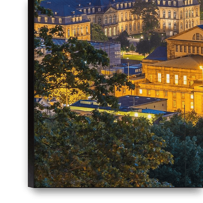 View of Stuttgart with the Staatstheater and the Schloßplatz in the evening.