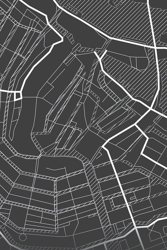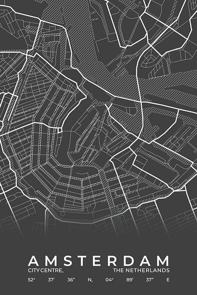 On this design you see a city map of the center of Amsterdam. We have the designs in multiple colors available, check it out in our shop!