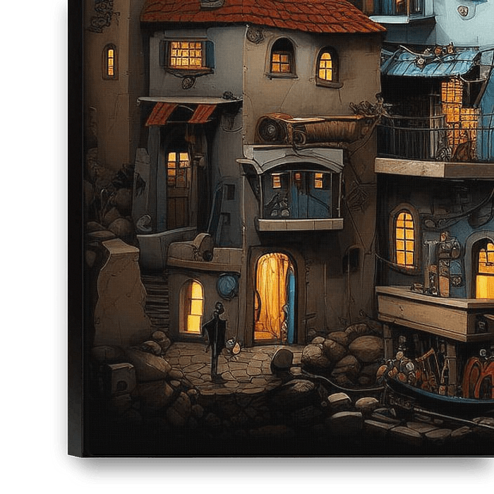 This painting is part of a series titled "A Tapestry of Tradition and Modernity," which explores the beauty and charm of town streets that blend the old and the new, the cultural and the natural.