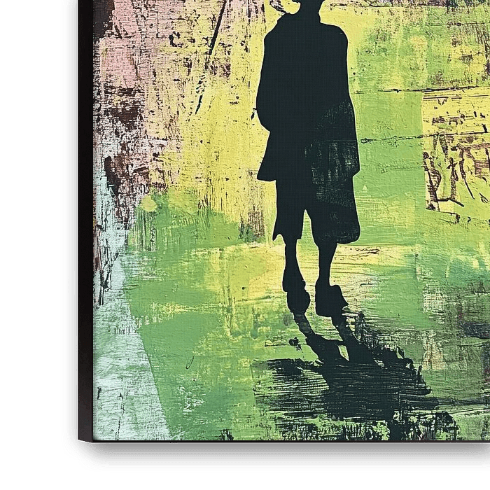 Urban Silhouette | Silhouette Girl - This is an abstract urban painting featuring a silhouette of a young girl against a colourful background of graffiti-like textures in red, green and purple.