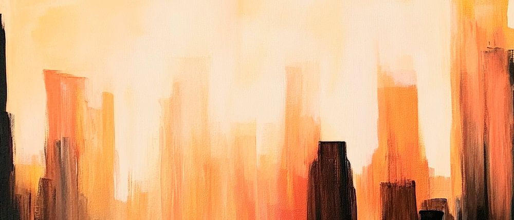A mysterious cityscape awakens before the warm glow of a sunset. The striking silhouettes of the skyscrapers stand out starkly against the bright orange sky. This atmospheric composition is perfect for the living room, where it creates an inviting atmosphere and stimulates conversation. Ideal for urban lovers!