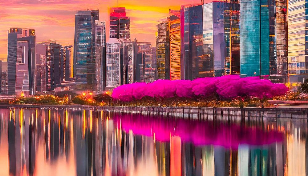Buy this illustration City with reflection by Mustafa Kurnaz on canvas, ArtFrame, poster and wallpaper, printed on demand in high quality.