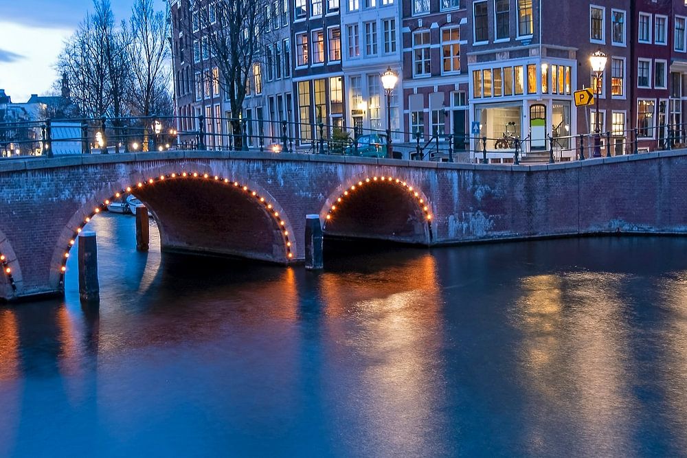 Cityscape of Amsterdam on the Keizersgracht at sunset