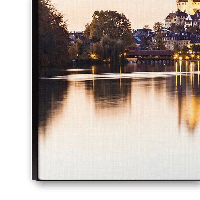 Buy this landscape artwork Cityscape of Thun at night by Werner Dieterich on canvas, ArtFrame, poster and wallpaper, printed on demand in high quality.