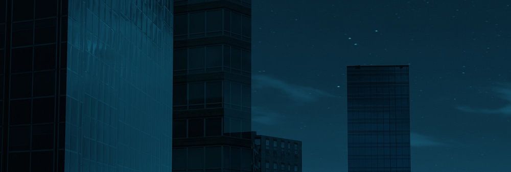 Cityscape with skyscrapers and tall buildings at night by Besa Art
