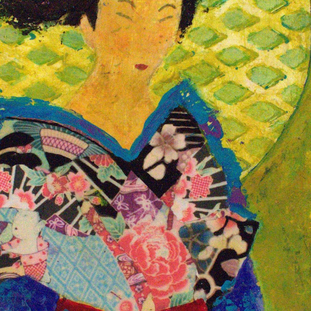 The works are a free interpretation of a Japanese tea ritual, bringing together repeated actions, focus, stillness and mystery. The Geisha's are created from that same ritual, layer by layer with mixed techniques.