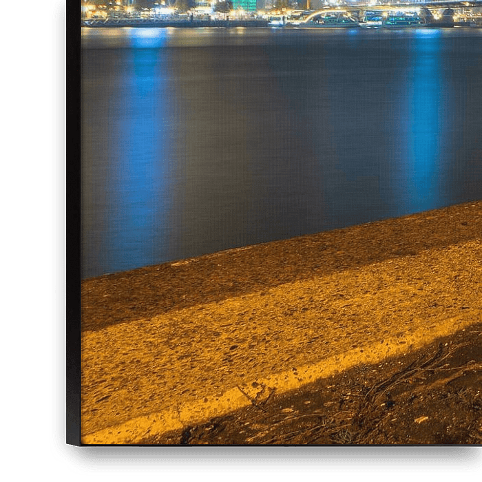 Close-up of a bollard in Rotterdam with the city skyline in the background. In the frame there are three bridges: the Erasmus, the Hef and the Willemsbrug. The lights of the buldings make nice reflections in the water.