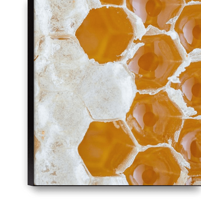 Buy this still life Close-up of a golden honeycomb l Food photography by Lizzy Komen on canvas, ArtFrame, poster and wallpaper, printed on demand in high quality