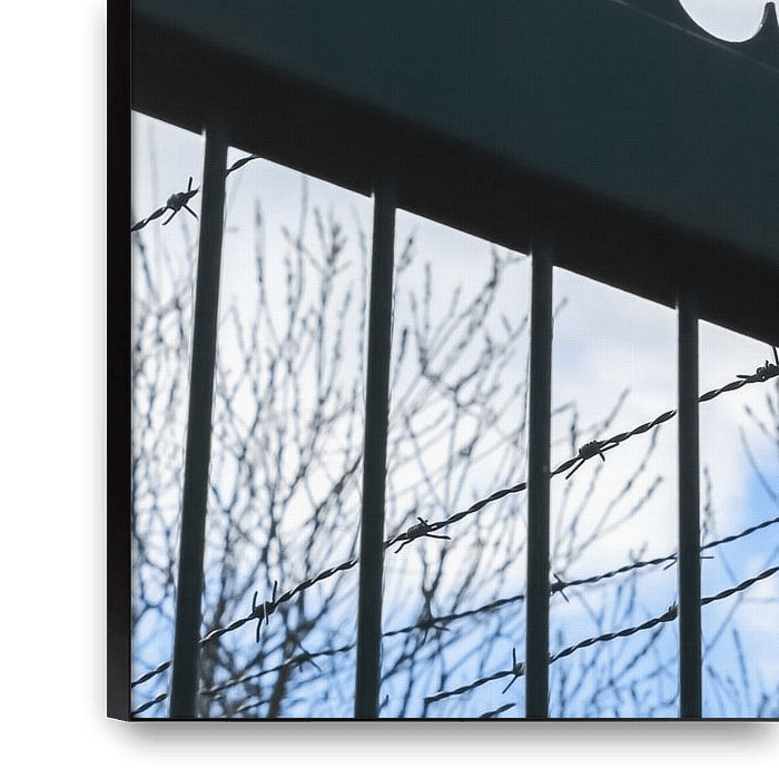 Buy the photo Close up of barbed wire on border fence by MPfoto71 on canvas, ArtFrame, poster and wallpaper, printed on demand in high quality.