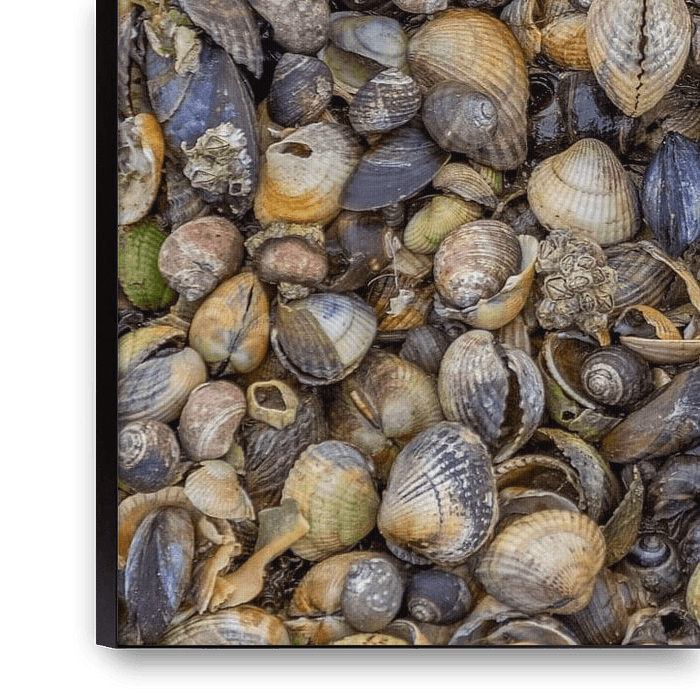 Buy the photo Close up of different shells by Achim Prill on canvas, ArtFrame, poster and wallpaper, printed on demand in high quality.