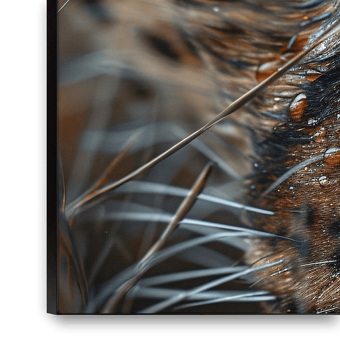 This impressive close-up of a leopard perfectly captures the intensity and beauty of this majestic animal. The drops of water on its fur add an extra dynamic and lifelike effect, allowing you to almost feel the excitement and power of the moment. This image is a perfect addition for any room where you want to add a sense of wild…
