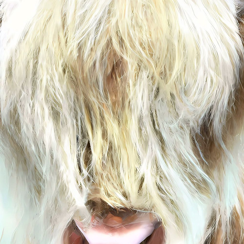 The coat of the Scottish Highlander falls over its eyes.
