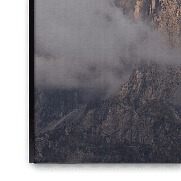 A majestic view of the Sassolungo peak in the Dolomites, caught in a play of light and clouds. As the evening sun sets the rugged peaks in golden glow, the timeless power and beauty of this UNESCO World Heritage Site reveals itself. This shot exudes tranquillity, grandeur and mystery, a perfect harmony between nature and emotion. Ideal as a wall decoration or luxury print, an image that transforms any space and invites the soul to stillness and wonder.
