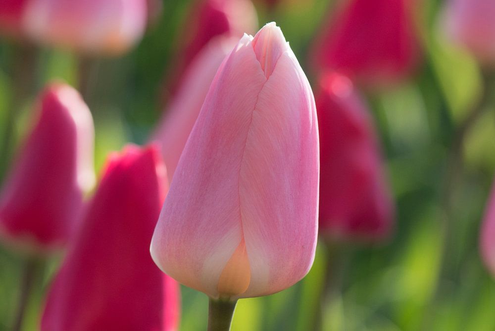 Buy this flower art Closeup pink and purple tulips by Egon Zitter on canvas, ArtFrame, poster and wallpaper, printed on demand in high quality.