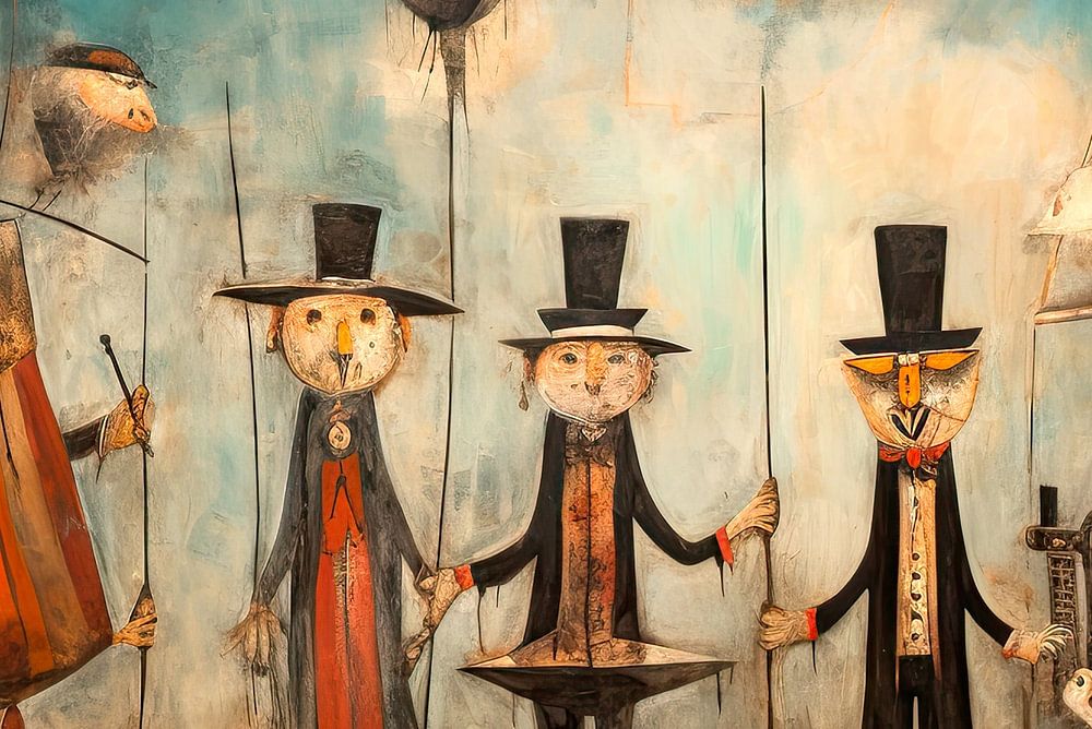 Let yourself be inspired by a world of surreal impressions. This painting reveals a fascinating interplay of abstract concepts and surreal elements that challenge the limits of the imagination. From extravagant bicycle rides through the labyrinth of thought to metaphysical melodies that transcend time, this series of images invites you to explore the world of surrealism in a whole new visual way. The image was created with the support of AI and optimised using image editing programs.