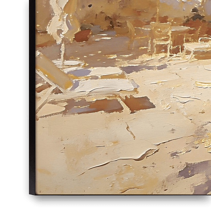 Immerse yourself in the radiant charm of the Mediterranean with this captivating painting from The Mediterranean – Romantic Shoreline Series Collection. A sun-drenched village courtyard comes alive with luminous energy, where crisp whitewashed buildings and graceful arched doorways bask in warm sunlight. Sharp, playful shadows stretch…