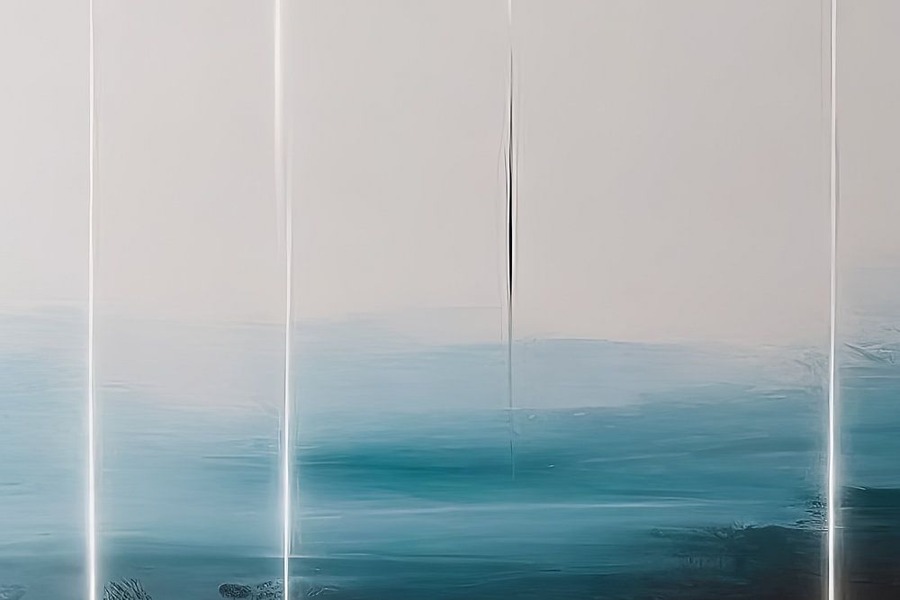 Picturesque image of the coastal landscape with an abstract, minimalist feel.....Digital art with the use of AI generation, composing and image fine-tuning