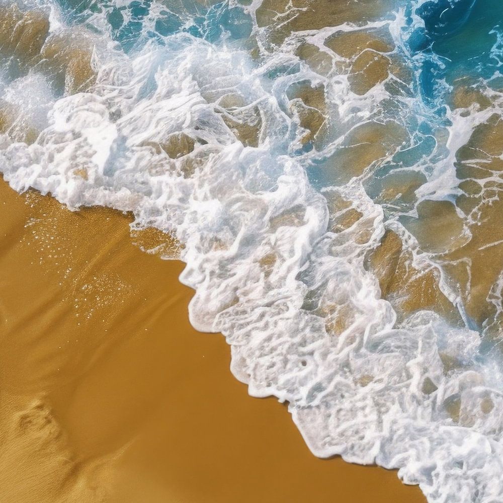 This striking image depicts dynamic waves crashing onto a golden sandy beach, capturing the majestic power of the sea. The calming blue and gold tones make this work ideal for lovers of seas and oceans, as well as those who appreciate nature motifs and landscape photography. It brings a refreshing and calming energy to your living spaces and is perfect for living rooms or bedrooms.