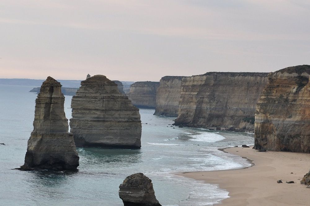 Along the Great Ocean Road, the spectacular landscape of the 12 Apostles is revealed in all its majesty. These imposing rock formations, emerging from the raging waves of the Southern Ocean, seem to defy time and the elements.