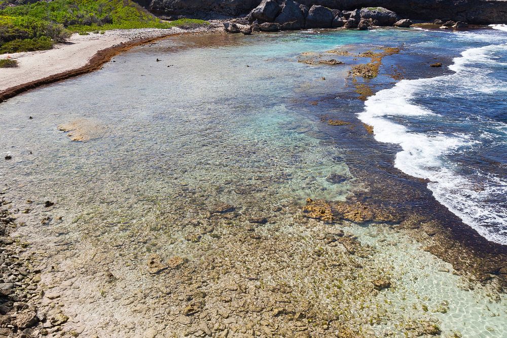 Coastline of Boka Grandi on Curacao with on the left the Christoffel mountain.