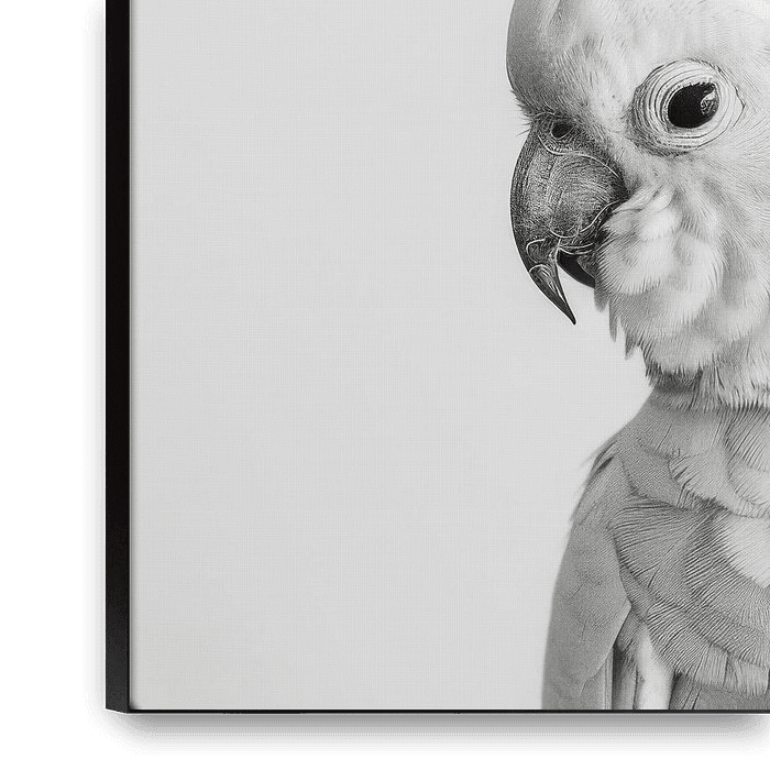 This exquisite black and white portrait of a cockatoo shows the impressive details of the feathers and the expressive gaze of the bird. The fine texture and elegant appearance make this picture an outstanding piece of art to adorn any wall. Perfect for lovers of minimalist aesthetics and nature photography, this piece will bring a calm…