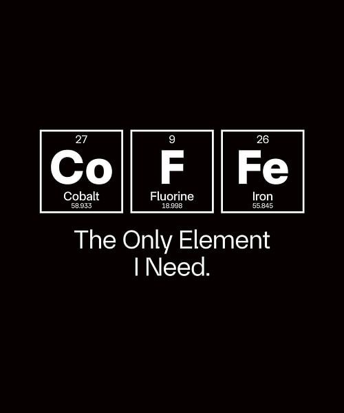 A clever and minimalist science-inspired design featuring chemical elements that spell Co-F-Fe (Coffee) with the phrase “The Only Element I Need.” Perfect for coffee lovers, chemistry fans, scientists, students, teachers, and anyone who runs on caffeine. A fun blend of nerd humor and daily motivation, ideal for work, school, labs, or as…
