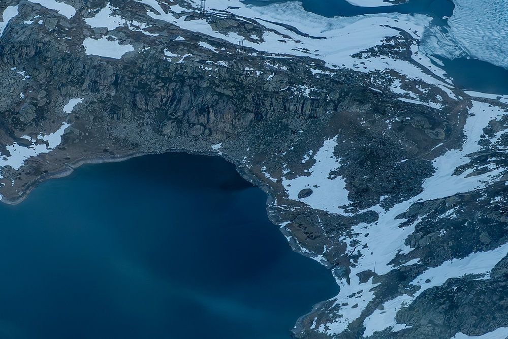 Aerial view of L', the Col des Sept Laux and Lac du Cos