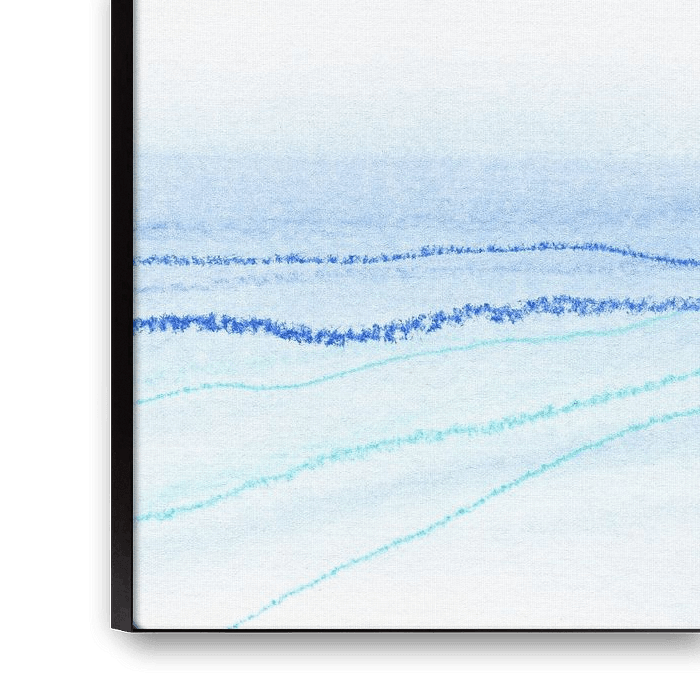 Soft blue and turquoise lines create a calm, abstract image reminiscent of a tranquil winter landscape with snow-covered fields. The gentle gradient from the centre to the edges gives the impression of a calm, open space under a clear sky with a snow-covered path leading through the snow to the horizon.