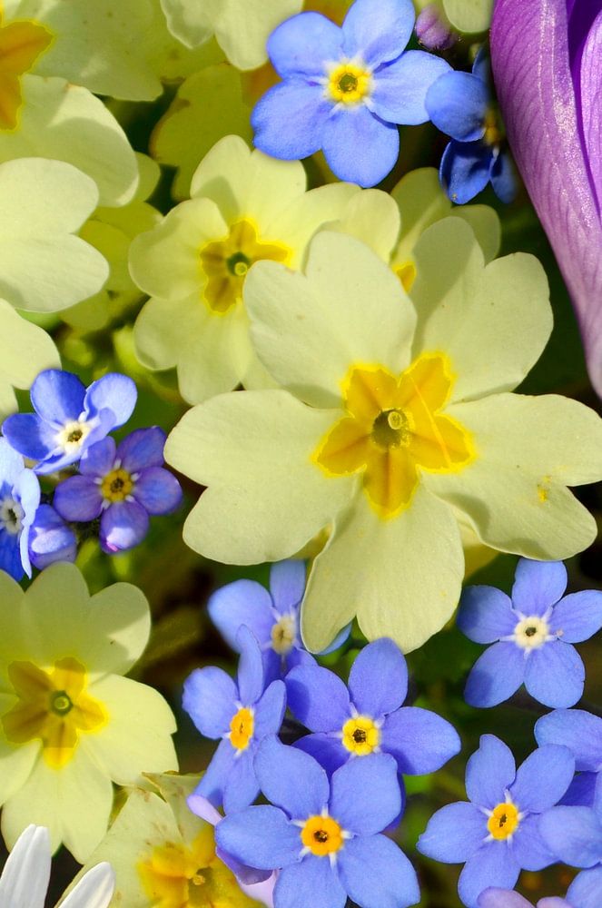 A photo with flowers blooming in my garden in early spring. Primroses, Forget-me-nots, Ipheion, Crocus, Daisies, Judas pennywort and Daisy. With photo editing, I managed to fill the whole image with the flowers placed alternately in front of,- and behind each other. I have photographed all the flowers from close up so that the details are easy to see. A cheerful impression of spring that any flower lover can enjoy,