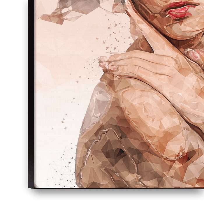 Digital collage with a portrait of a woman hiding her nudity. The close-up portrait of this work can also be seen in my webshop because I also like this cut-out for the wall. So this close-up can also be viewed and ordered in the webshop.