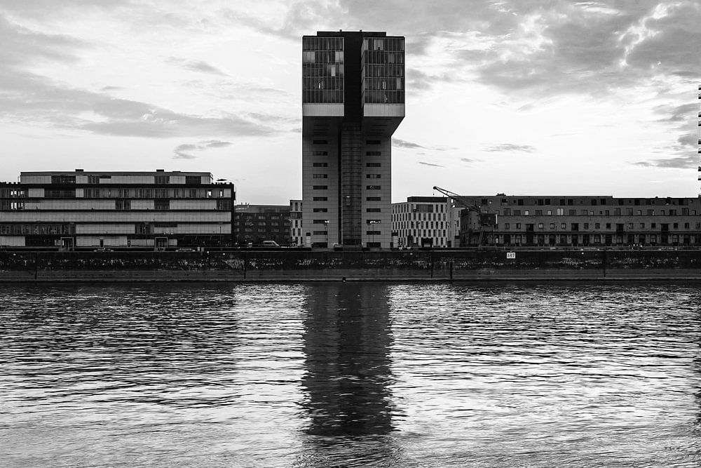 Cologne crane houses on the Rhine - black and white by Frank Herrmann