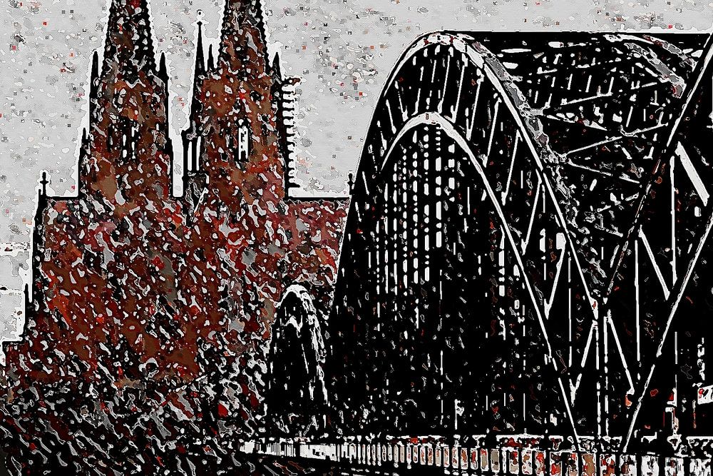 About "Cologne panorama artstyle painting black rouge white"