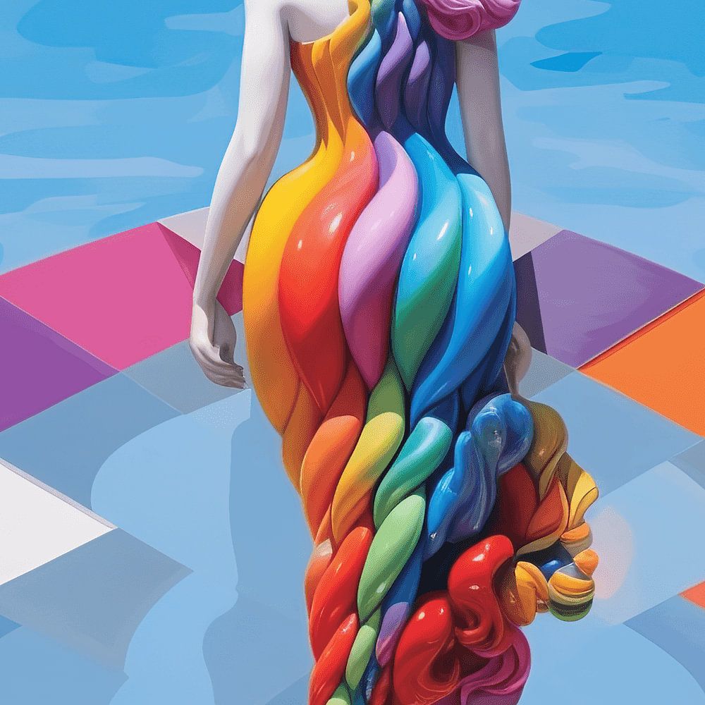 This painting from the 'Colored Stripes' collection is a mesmerizing display of chromatic harmony. Bold, colorful stripes intersect and intertwine, creating a dynamic composition that plays with the viewer's perception of color and space.