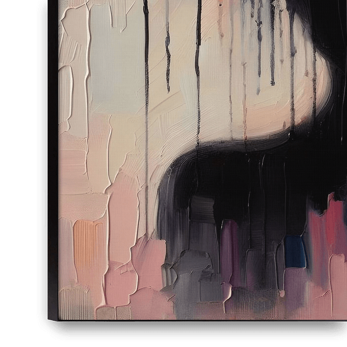 Explore this modern abstract work that places the shadow of a woman in an enchanting light. With deft use of pastel shades and subtle play of light and dark, this work evokes an atmosphere of mystery and sophistication. Experience the subtlety and understated power of this work, and let the elegance of the female form enrich your space…