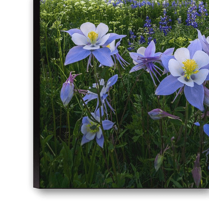 This photograph was taken during a sunset hike along Teddy's Trail in the town of Mt Crested Butte, highlighting the vibrant colors of the Columbine flowers against a backdrop of the setting sun. This Colorado Photography is expertly captured and printed on high-quality print mediums, making it a perfect addition to any home or office decor.