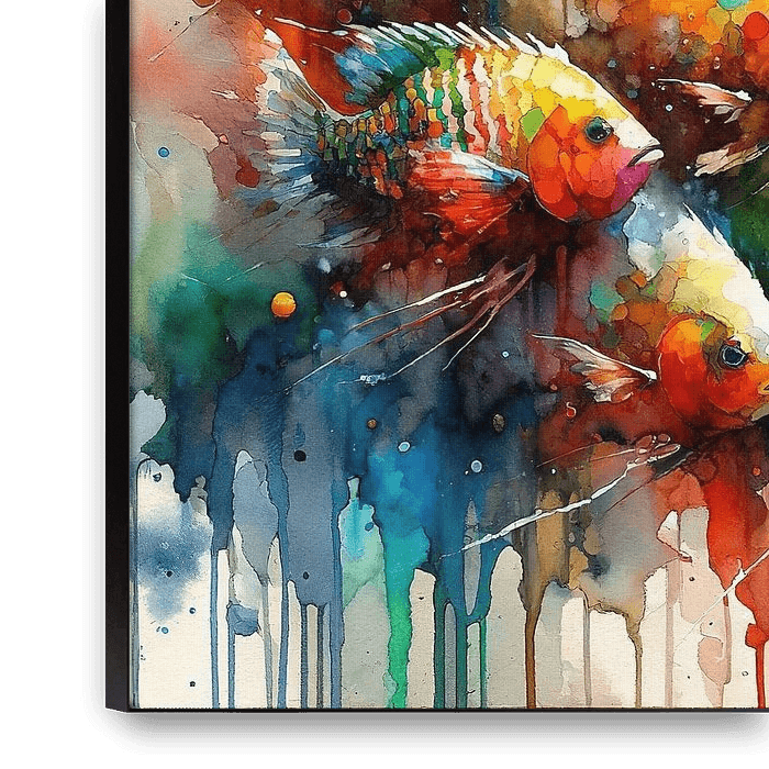 Buy this abstract artwork Colorful Aquarium Fish by Chromatic Fusion Studio on canvas, ArtFrame, poster and wallpaper, printed on demand in high quality.