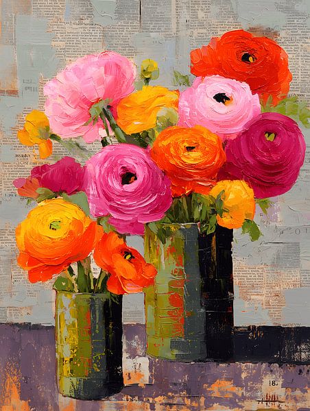 Colorful Flowers in Vase by IamHome Studio